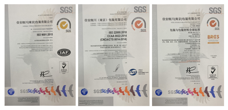●公司質(zhì)量體系完備,先后通過了ISO9001質(zhì)量管理體系、ISO22000食品安全管理體系、BRC體系認證。