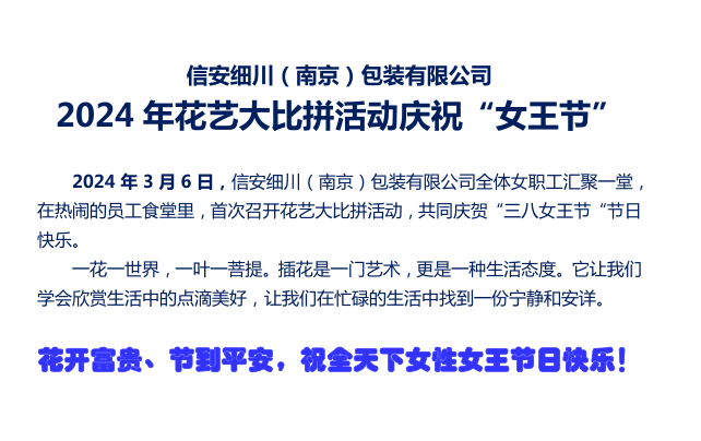信安細川(南京)包裝有限公司花藝大比拼慶賀“三八女王節(jié)”